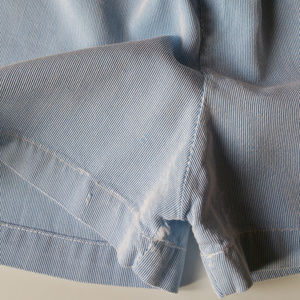 Lightweight blue front lined blazer and suspender shorts set from R-Gee Originals. Three button closure at front. Elephant applique on chest. Lightweight, washable polyester fabric. Condition issues: See Pic 7-8 for light spot on front of shorts, small ravel on crotch seam.