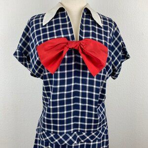Vintage 60s Carla Gay Navy Blue and White Check Two-Piece Dress (vintage size 16, use measurements below)