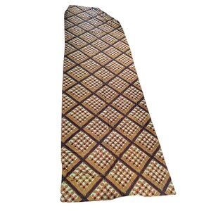 Vintage 60s Uncut Polyester Satin Mod Fabric w/ Receipt Orange Check 5 sq.yds.