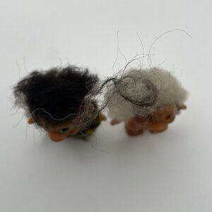 Includes one troll wearing an authentic U.S. Army outfit with dark mohair hair, and one nude troll with white mohair and pearl earring accent.