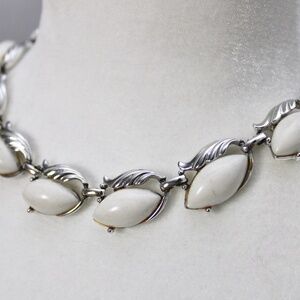 Vintage 60’s Unsigned White Thermoset Plastic with Silver Tone Chain Necklace