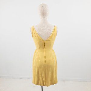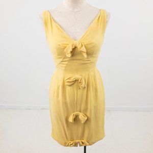 Vintage 60s V Neck Bow Front Mini Dress Yellow