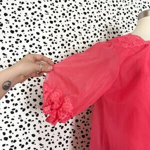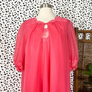 Vintage | 60s Vanity Fair Peignoir Bright Pink Sheer Two Piece Lingerie PJ Set