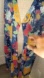 Beautiful and lightweight kimono robe in a vibrant royal blue with a large floral print in yellow, red, and turquoise.