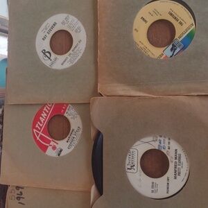 Collection of vintage vinyl records with assorted labels and sleeves. Perfect for music enthusiasts and collectors.From a Radio station,will show wear and use