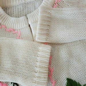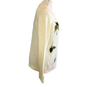 Vintage 60s White Cardigan Sweater Pink Berries Leaves Pinup Rockabilly Sz M