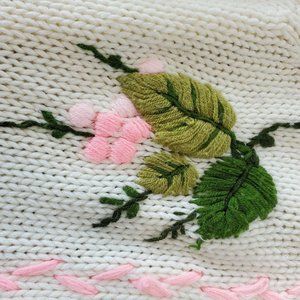 Vintage 60s White Cardigan Sweater Pink Berries Leaves Pinup Rockabilly Sz M.