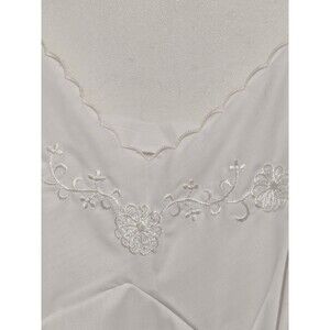 Vintage 60s White Emb Cotton Blend Fabric Full Slip Dress Sz 36 Scalloped Hem