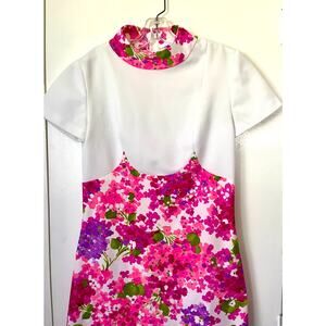 Vintage 60’s White Pink Flower Power Go Go Mini Dress XS Small Groovy Hippie