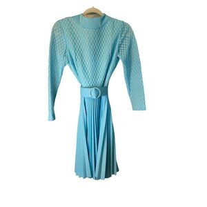 Vintage 60's Women's Mary Dobbs Original Blue Pleated Belted Dress Size S