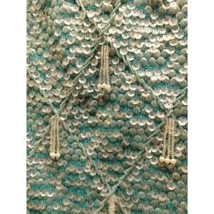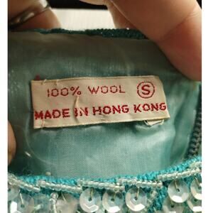 Vintage 60s Womens Size Small Blue Sequin Beaded Sleeveless Wool Theater Costume