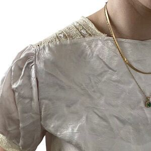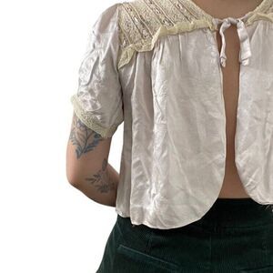 Vintage 60s Womens Pale Pink Silk Lace Open Back Crop Top Valentines Day Blouse