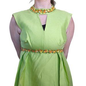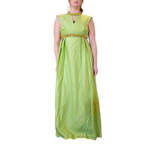 Vintage 60s XS/S Lime Green Sleeveless Long Maxi Dress Raw Silk Retro Hostess