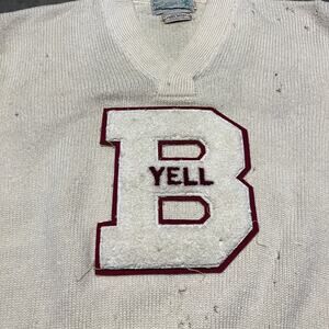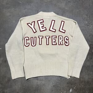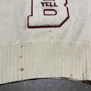 Vintage 60s Yell Cutters Cream Wool Varsity V-Neck Sweater