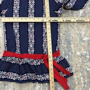 Vintage 60’s Youngland Navy Floral Dress size 6. Union made in the 1960’s. No size tag. Approx size 6 - see measurements in pics. Only defect is a stain on the wrist lace - see pics