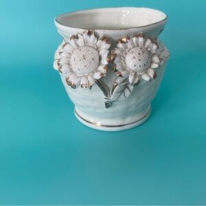 Vintage 60s baroque gilded cream floral capodimonte porcelain vase cup regency