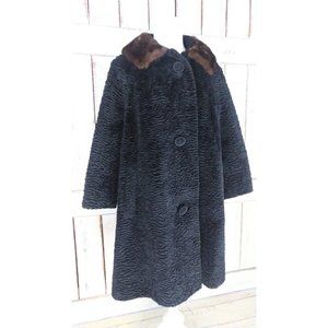 Vintage 60s black faux Persian lamb mink fur collar coat
