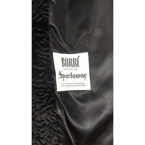 Vintage 60s black faux Persian lamb mink fur collar coat black wool fur collar swing coat jacket curly lamb jacket Borre coat