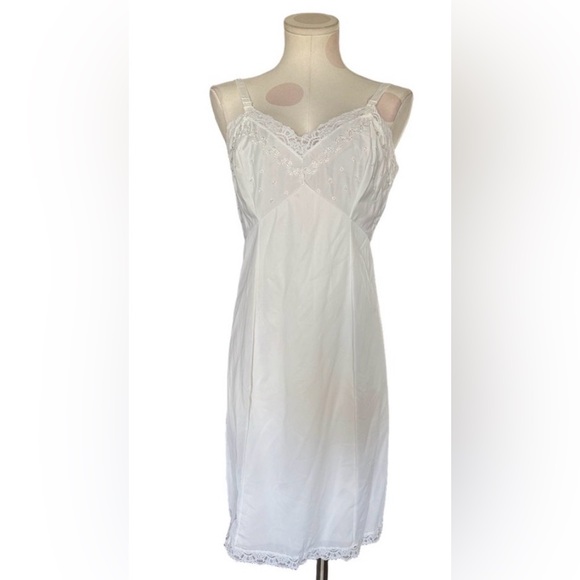 vintage slip dress white slip lingerie nylon slip embroidered lace slip 1960s lingerie 1970s lingerie made in usa sears vintage underdress sleepwear vintage intimates