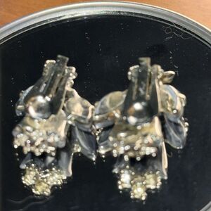 Vintage 60s gray thermoset & rhinestones tulip shaped clip on earrings