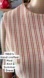 Burnt orange skirt that is high waisted and the top has matching pin stripes on a cream colored base
