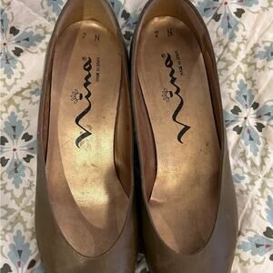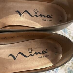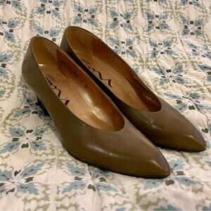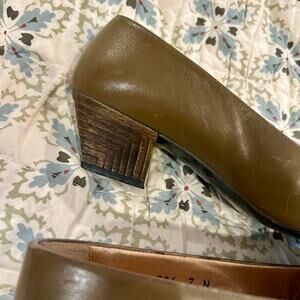 Vintage 60s or 70s Nina Khaki Green Leather Pumps w Geometric Heels