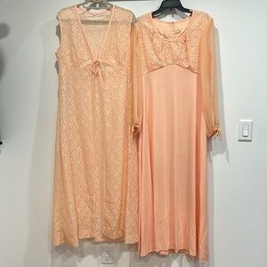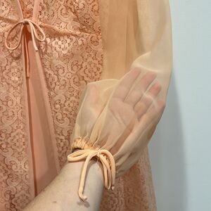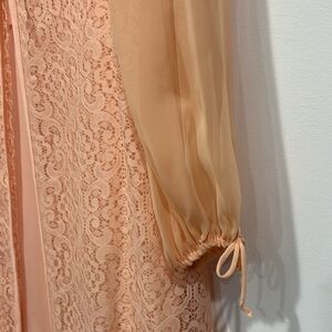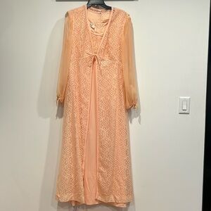 Vintage 60s princess peach long sleeve maxi dress and matching lace vest set 18