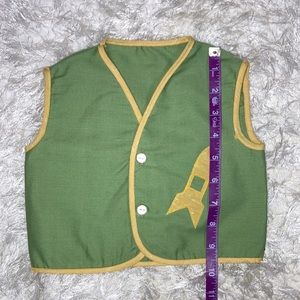 Vguc pfsf great vintage green and gold lightweight summer vest sleeveless top with rocketship no tags see measurements about 12m no stains tears or rips some loose stitching in last picture