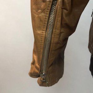 Vintage Beau 60s-70s Breed "Cafe Racer" size 44 ..purchased as new original stock complete with original tags [discarded] and damaged zipper. Item was always a little too big and did not ensure proper fit. There are no holes or rips in lining or leather..