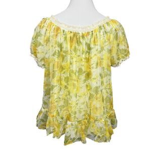 Vintage 60’s/70’s Floral Babydoll Nightie Yellow Green Chiffon Ruffle M