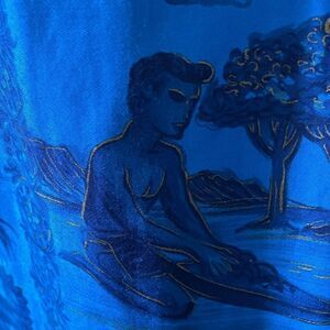 The imagery on this dress is very unique, I love the mix of blues with a tinge of gold outlining some of the imagery.