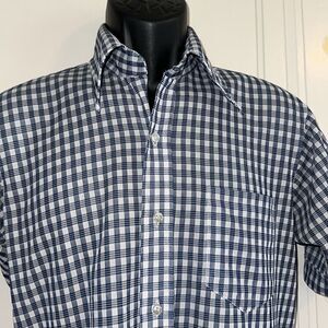 Vintage 60s/70s J.F. Austin Shirtmakers blue & white check short sleeve shirt