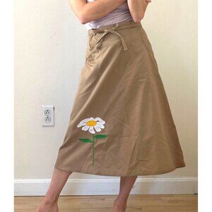 Vintage 60s/70s John Gate Wrap Tan Skirt with Daisy Flower Embroidery Applique