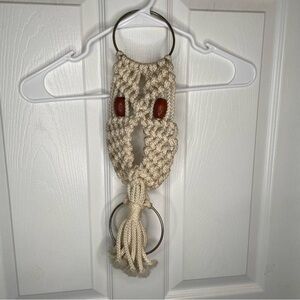 Vintage 60s/70s MCM Macrame Owl Wall Hanging in Cream