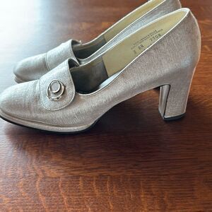Vintage 60’s 70’s Metallic Silver Platform Heels Size 8