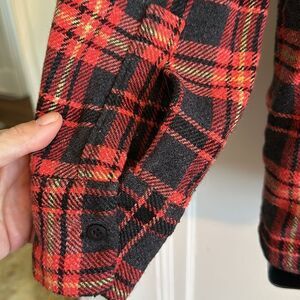 Vintage 60s/70s Misto Lana Irrestringabile red, black & tan plaid thick shirt or jacket