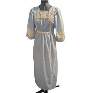 Vintage 60s/70s Pastel Blue Prairie/Cottage Gilead Embroidered Lace Maxi