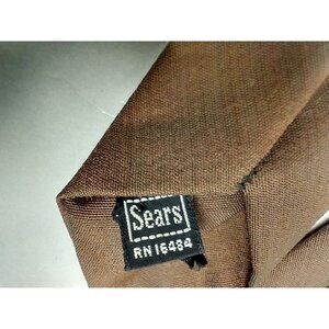 The Vintage 60's/70's Sears Brown Textured Design Wool Blend Skinny Neck Tie is a unique and stylish accessory for men from the 1970s. Made from a wool blend material, this original neck tie features a monochrome brown color with a textured design, adding a touch of retro charm to any outfit. The skinny neck tie style offers a classic and timeless look, suitable for special occasions or adding a vintage flair to everyday wear.