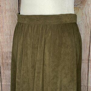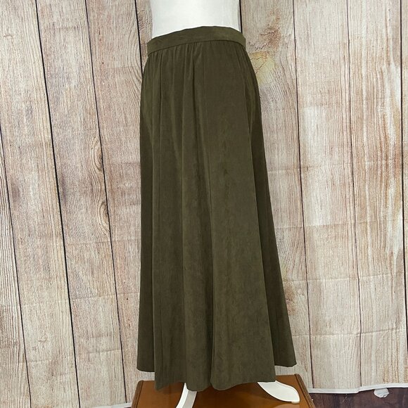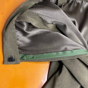 Svelte and Long Vintage Army Green 60s/70s skirt. There are no tags so it may be homemade but very professionally done if it is. This beauty is in excellent condition with no flaws to note. The fabric from my closest guess could be tweed (I am no expert though). There is a metal zipper in back and she flows gracefully with every movement! Please see measurements below for accurate sizing and thank-you for stopping by Lucy and Ethel's Vanity!