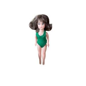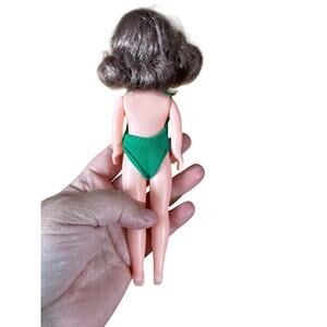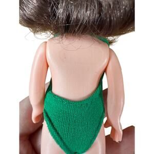 Vintage 60s/70s beach retro doll small. GUC. Unbranded green swimsuit brown hair
