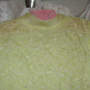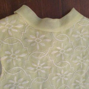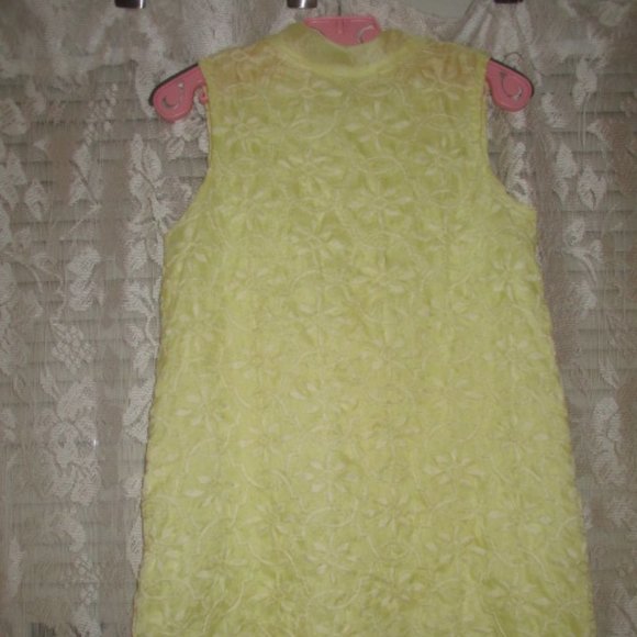 Discounts by bundling. Please see measurements- this is approx a vintage size 12-14 but all styles/brands/era's of dresses are different sizes. This is hand made so no tags. No returns so you HAVE TO MEASURE- measure a dress that fits and compare the measurements to this dress. I believe this was made from a Simplicity pattern in the 70s-- I know because my mom made it and it was mine!~ satin acetate lining - metal zipper and chiffon lace front. satin collar. One area in the lining with a snag (see pics) (7x6x1;7oz)