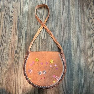Vintage 60s/70s tooled leather painted floral boho bag