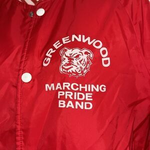 Vintage 60s/70s Nasco Inc Red Greenwood Marching Pride Band Windbreaker Snap Front Jacket