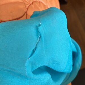 Good condition except for one small hole & a rip on the seam which I believe where the tag was