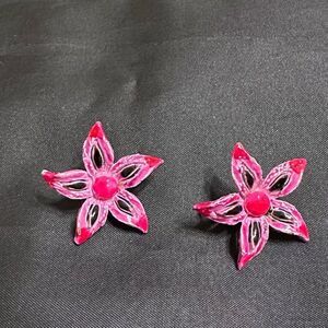 Vintage 60s Arthur Pepper Pink and black enamel metal flower clip-on Earrings
