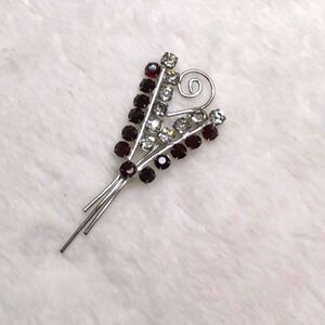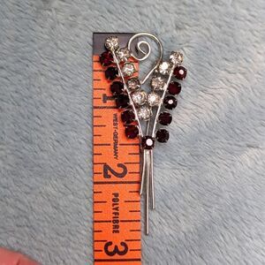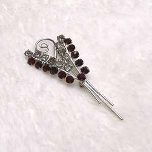 Vintage 60's Clear and Red Rhinestone - Silvertone Spray Brioche