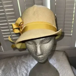 Vintage 60s Marche Brand Light Yellow Cloche Hat with Bow Accent