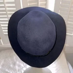Vintage 60s Navy Blue Felt Wide Brimmed Hat with Lace Detailing