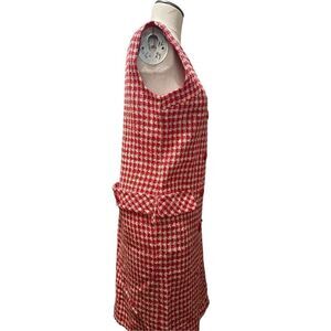 Vintage 60s Red and White Houndstooth Tweed Double Breasted Button Up Dress 11