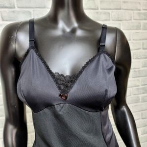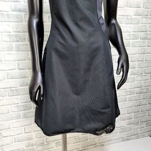 Details: Vintage 60s The Doesn't Slip Size 32 Black Nylon Sleeveless Lace Slip Dress. Textured nylon body